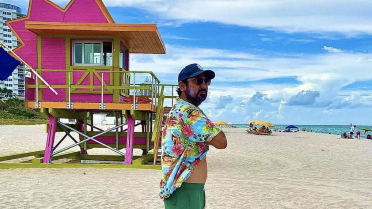 Eddie and his family spent the week in Miami aka the beach which is Eddie's happy place. They spent their time swimming in the ocean and in the pool at their rented out place. Eddie shared a photo of himself on the beach next to a lifeguard stand noting that since he's a lifeguard, he wasn't actually on vacation. He also shared that a coconut tried to kill him when it fell out of a tree. So he decided to milk the coconut and create a Reel out of it while rocking a Hawaiian shirt.
